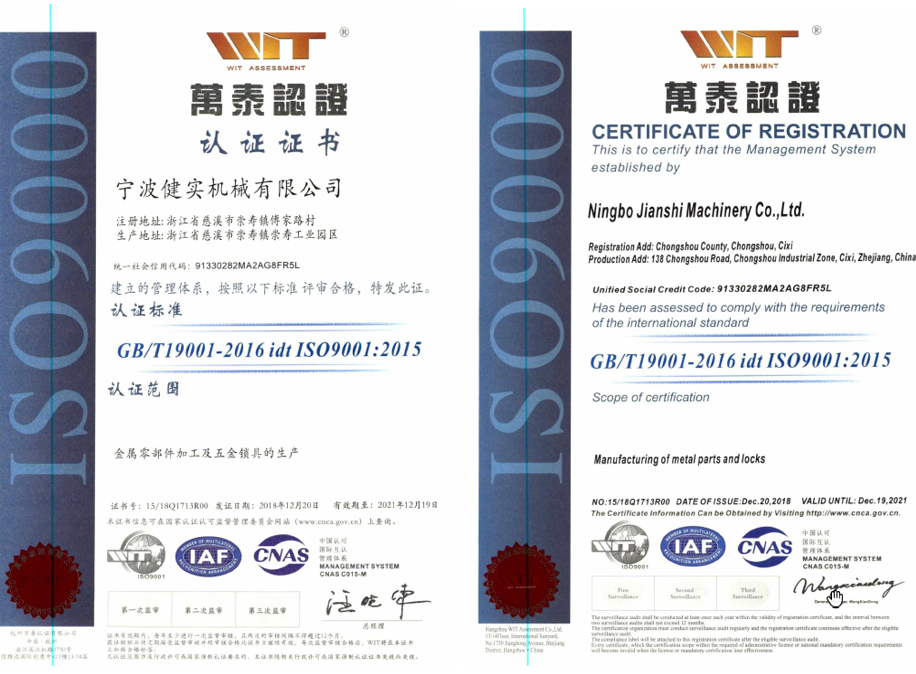 公司已于2014年4月獲得ISO9001證書。內(nèi)部各項(xiàng)流程清晰,人員職責(zé)明確,嚴(yán)格按照體系規(guī)定運(yùn)作。